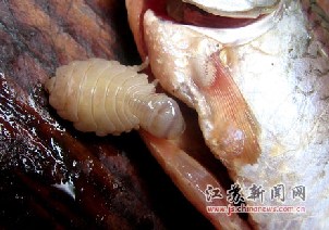 Kali ikannya udah mati baru kutunya masuk, atau telur kutunya udah ada diikan, tambah besar dan tambah besar macam film2 horor aja hhhhhiiiii